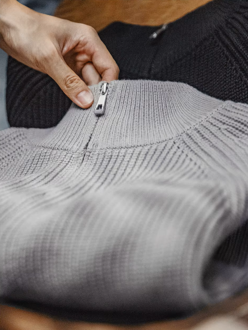 I was skeptical about the 'free gift' offer, but the quality of both the Quarter-Zip and the scarf is proper. The sweater has a reassuring weight to it—heavy cotton, sits well on the shoulders. The scarf is a nice bonus for the commute.