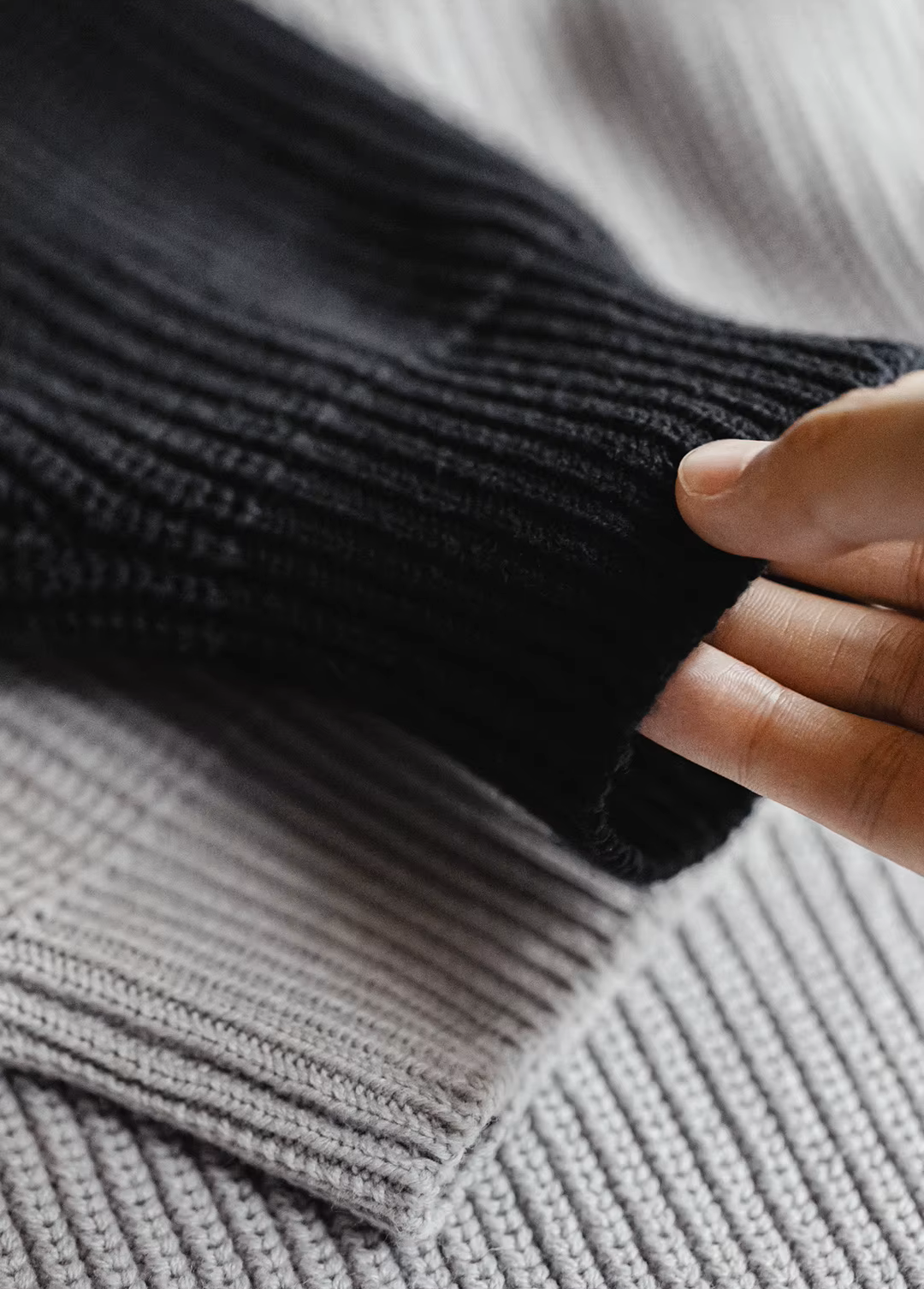 The vertical ribbing really does give it a solid structure. It makes my chest look broader, which is a plus. The windowpane scarf is sharp, matches my overcoat perfectly.